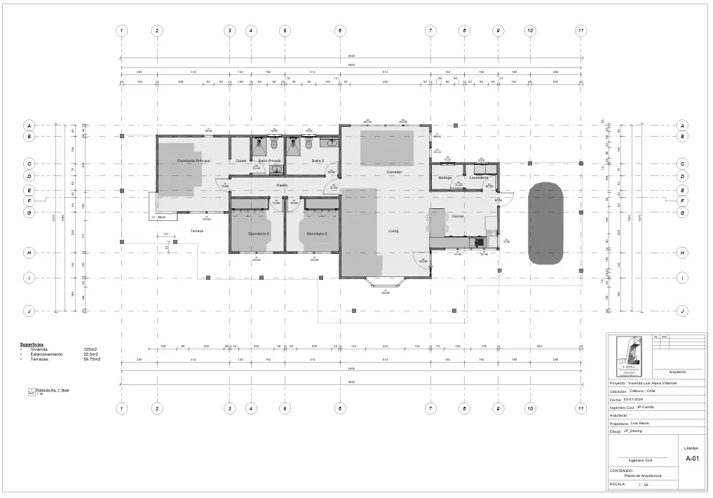 Quiero felicitar a Juan Pablo por su excelente profesionalismo y buena disposición para solucionar nuestras dudas, realicé mi proyecto hace 2 años y ahora recién estoy construyendo, a pesar de eso siempre buena disposición.